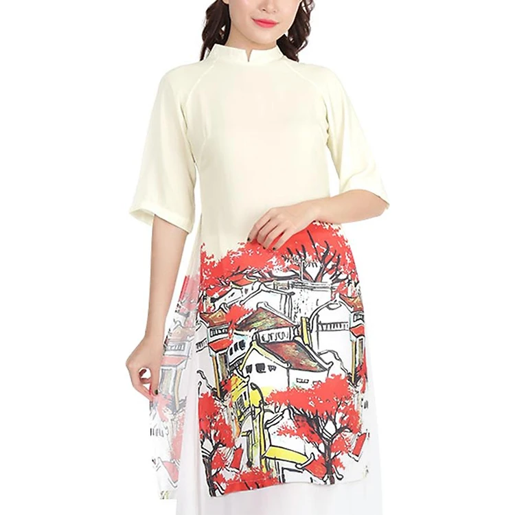- Kiểu áo dài cách tân này có thể kết hợp cùng quần culottes, chân váy xòe, chân váy xếp ly dài đến ngang bắp chân tạo phong cách nữ tính, điệu đà khi đi dạo phố xuân.