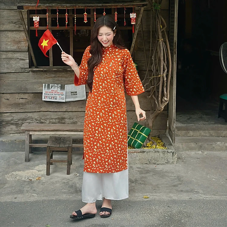 Áo dài cách tân họa tiết hoa phong cách vintage có size dành cho nữ Ngọc Hiên Miều Est.2013