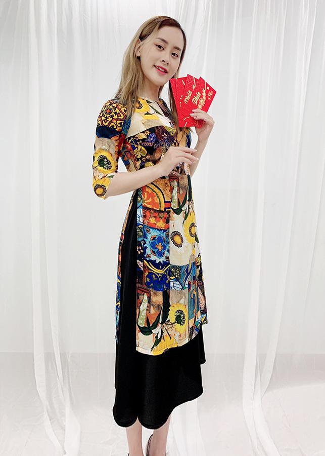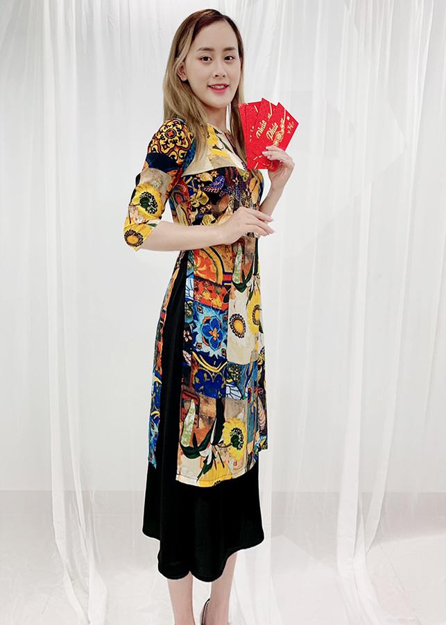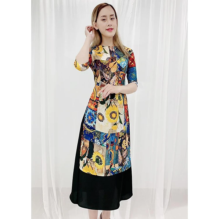 - Áo dài được thiết kế ngang gối rất dễ mặc và tôn dáng, những chị có phần eo hơi tròn 1 chút thì khỏi lo vì áo dàinay thiết kế che bụng rất tinh tế,