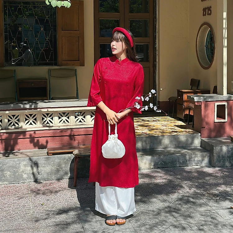 Áo dài cách tân nữ thích hợp đi chơi lễ tết kiểu truyền thống Kim Dung Miều Est.2013