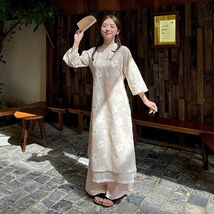 Áo dài cách tân nữ thích hợp đi chơi lễ tết kiểu truyền thống Thanh Mai Miều Est.2013
