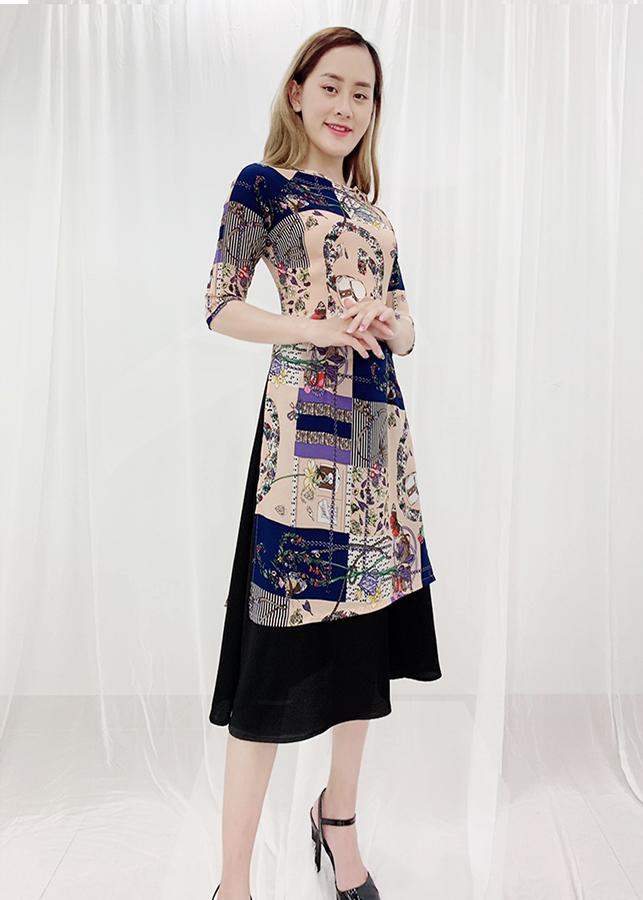 - Áo dài được thiết kế ngang gối rất dễ mặc và tôn dáng, những chị có phần eo hơi tròn 1 chút thì khỏi lo vì áo dài nay thiết kế che bụng rất tinh tế,