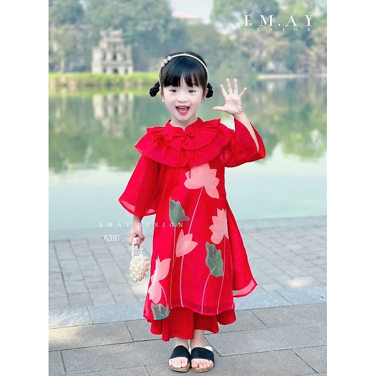Áo dài cho bé gái mẫu Hoa mùa xuân xinh xắn tết trung thu năm mới từ 10-45kg hàng thiết kế cao cấp