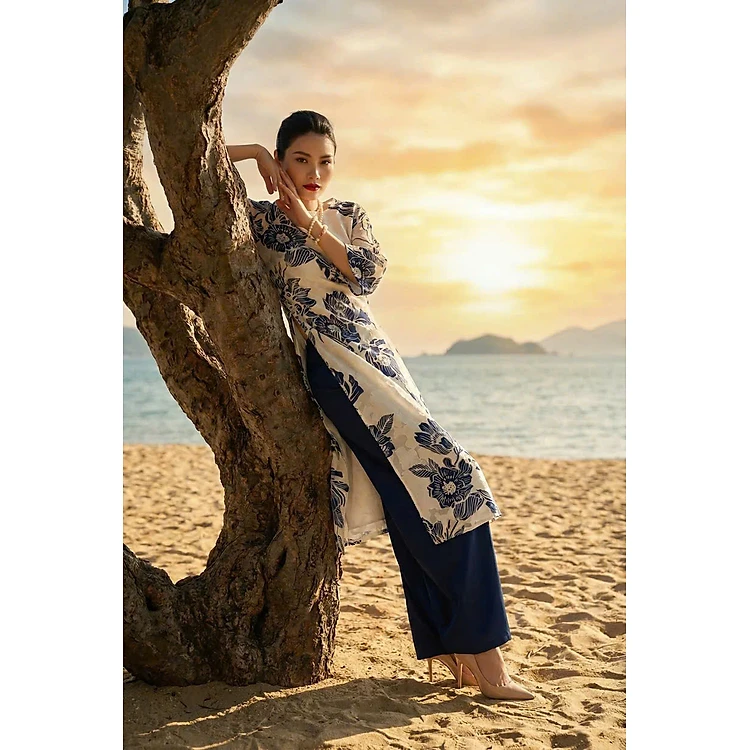 Áo Dài Cổ Thuyền Hoa Mẫu Đơn ADA013 thời trang thiết kế Hity