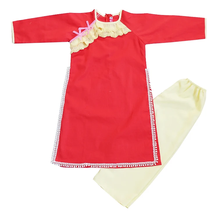 Áo Dài Đỏ Đính Ren Cổ CucKeo Kids AD1703 (Đỏ)