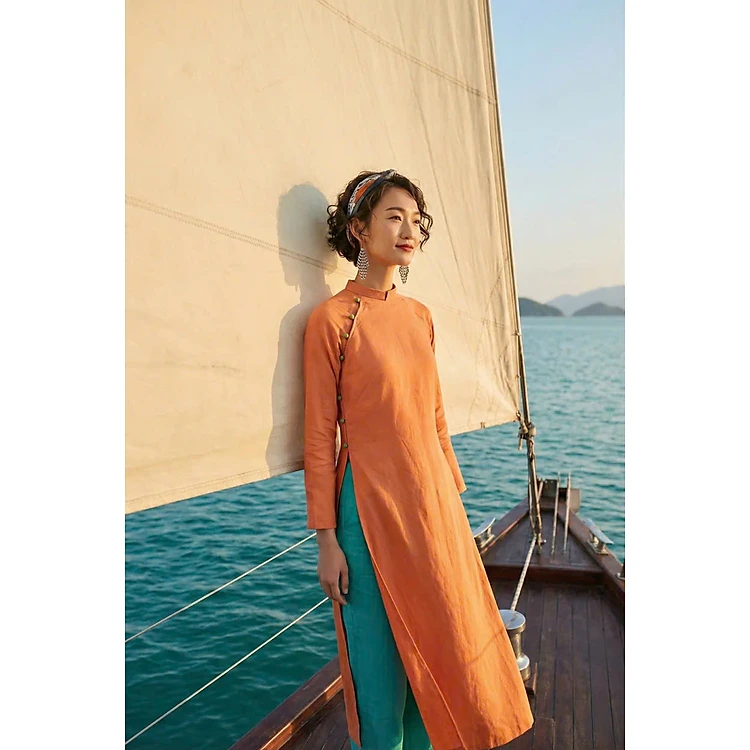 Áo Dài Raglan Linen Mơ Nghiền ADA001 thời trang thiết kế Hity
