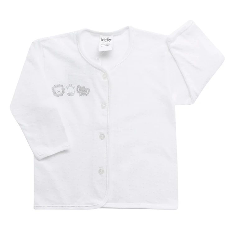Áo Dài Tay Cho Bé Tolly Joy 576 – Trắng với chất liệu cotton cao cấp, mềm mại, thấm hút mồ hôi hiệu quả cho bé thoải mái hơn khi mặc. Thiết kế áo tay dài, hàng nút gài trước giúp mẹ tiện lợi hơn khi thay đồ cho bé. Cổ chữ V ngộ nghĩnh cho bé thêm phần đáng yêu. Màu trắng với các đường vân nổi bật góp phần mang lại vẻ ngoài dễ thương.