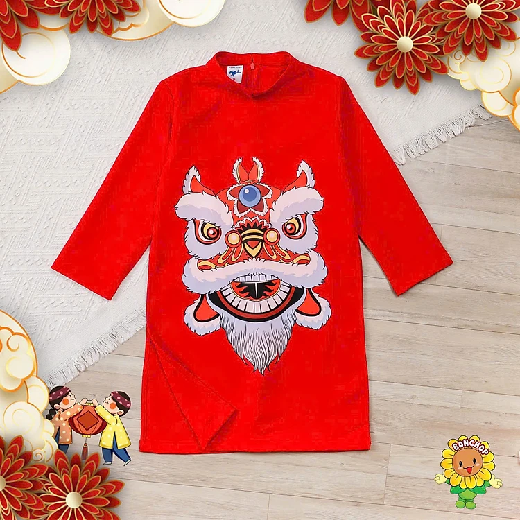 Áo dài tết bé trai hình Lân Sư Rồng từ 10-42kg. Áo dài cách tân chất liệu vải tuyết mưa