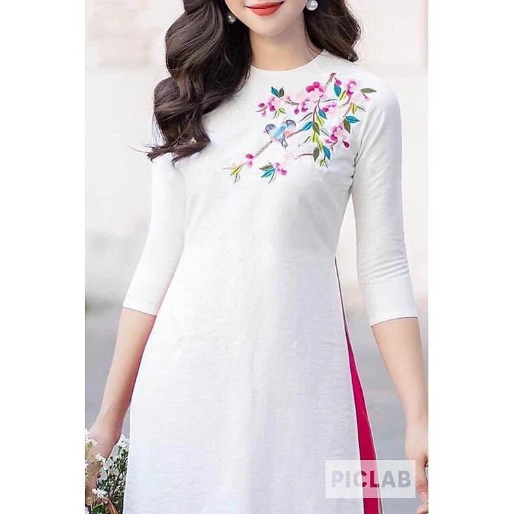Áo Dài Thêu Truyền Thống Lụa Tô Châu Cao Cấp - Áo Dài Mian ( hình thật )