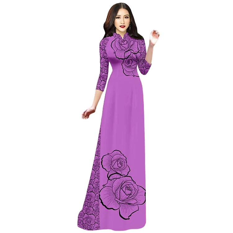 ÁO DÀI TRUYỀN THỐNG IN HOA HỒNG TẶNG CÀI TÓC XINH XẮN