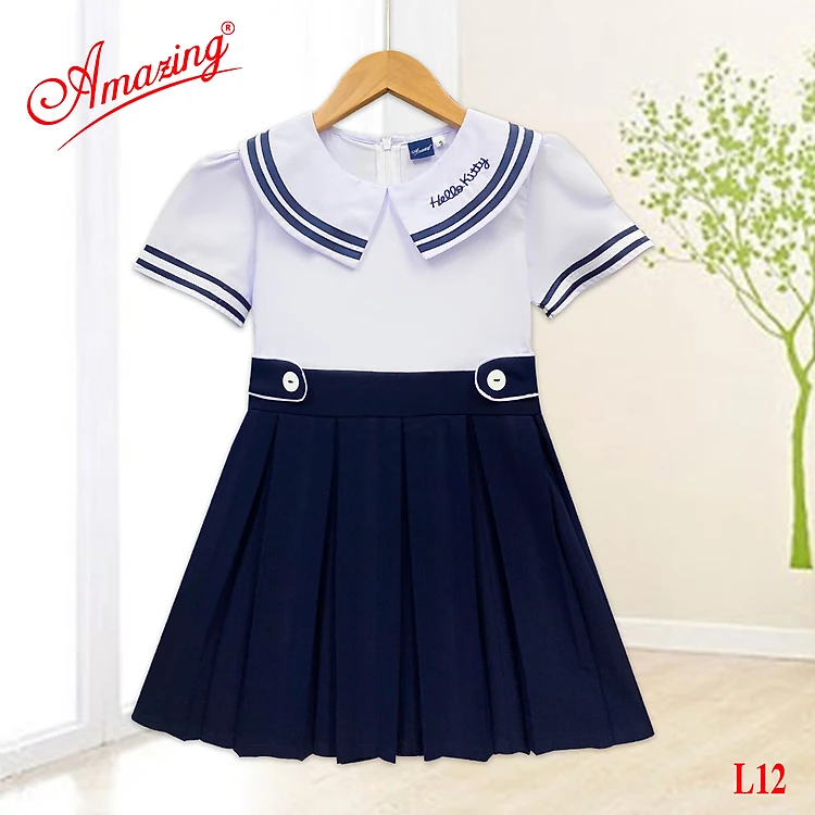 Áo đầm Amazing liền thân cao cấp cho bé gái đi học, đồng phục học sinh cấp 1, size tới 65kg