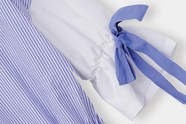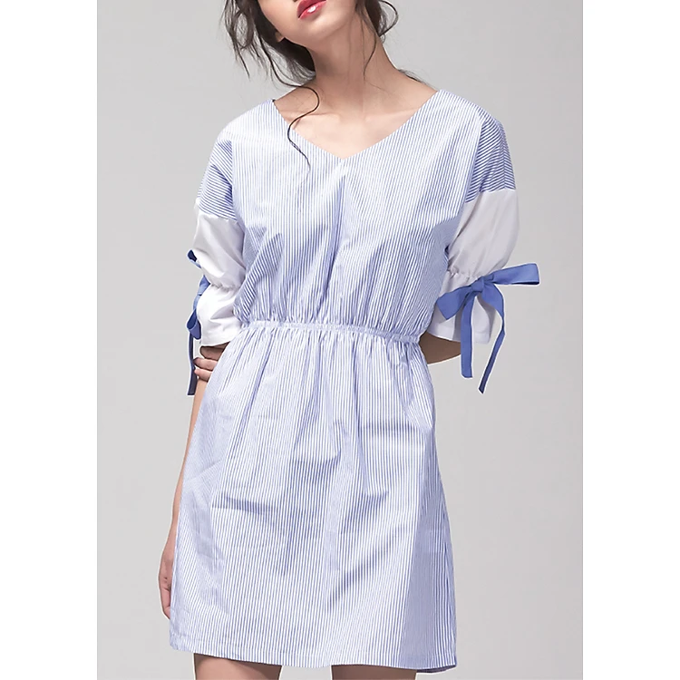 - Tạo điểm nhấn nữ tính cho vẻ ngoài, đầm có thiết kế cổ chữ V, bo eo, tay phối nơ xinh xắn mang đến nét cá tính và cuốn hút cho bạn gái.