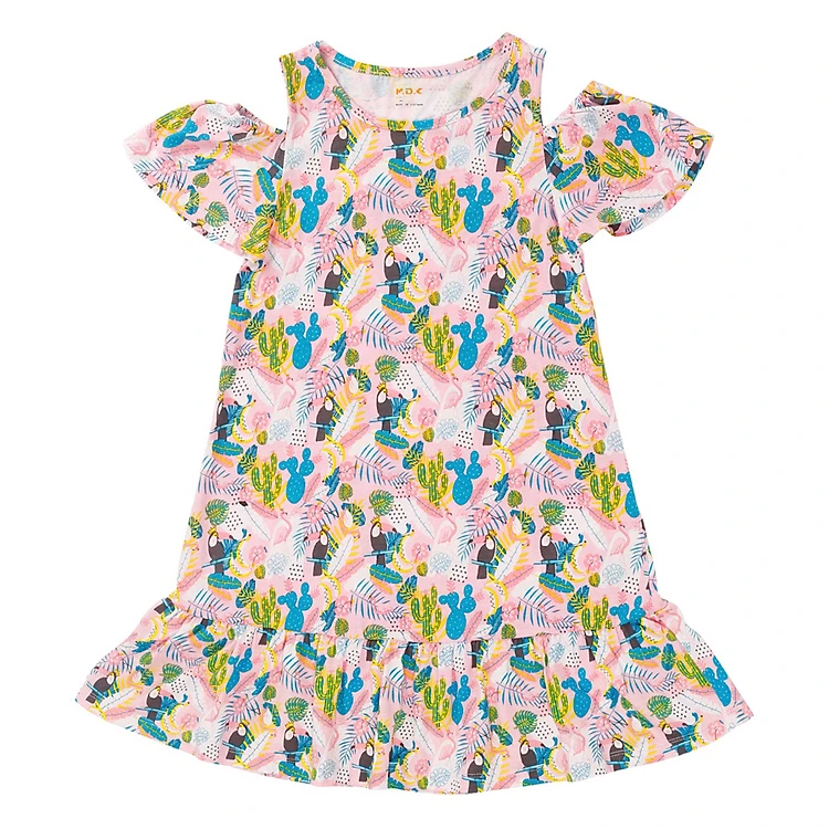 - Áo Đầm M.D.K Hở Vai In Họa Tiết (Frilled Dress With Cold Shoulder) Hoa mang đến vẻ đẹp điệu đà và duyên dáng cho bé. Với thiết kế xinh xắn cùng họa tiết đơn giản, trông bé sẽ càng nữ tính hơn bao giờ hết.