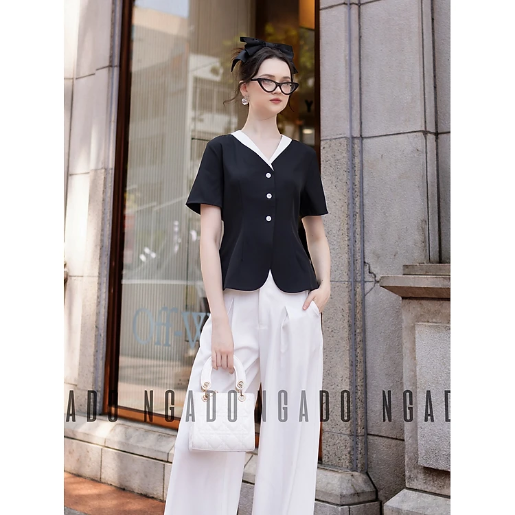 Áo đen cổ viền trắng NGADO , Áo kiểu nữ , áo thiết kế