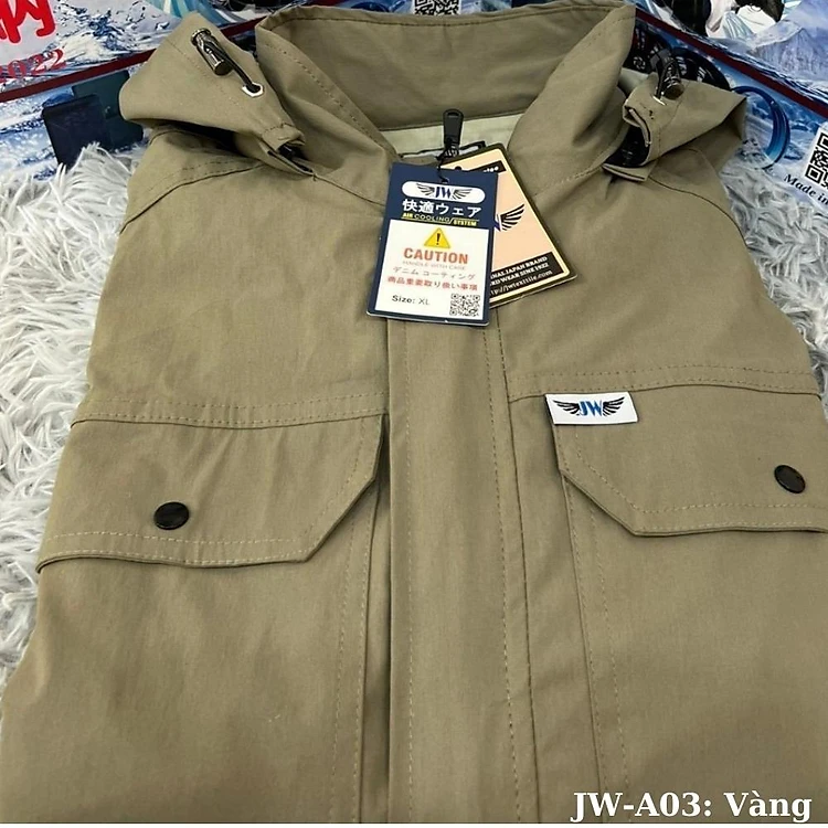 Áo điều hòa Nhật Bản JW 21V năm 2023, chất vải Kaki Pangrim Hàn Quốc, pin dung lượng lớn 25000mAh, quạt không chổi than tốc độ cao cánh có thể tháo rời