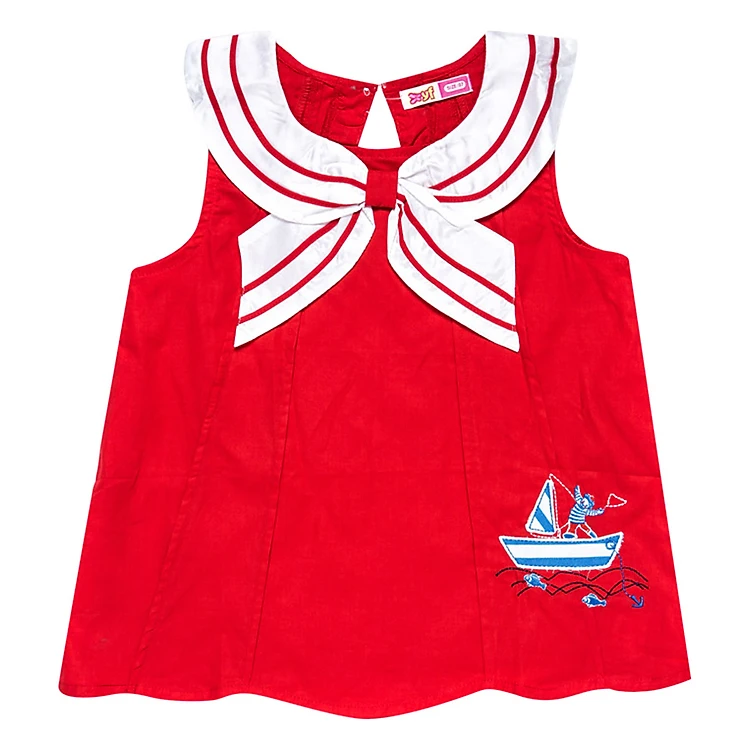 • Thiết kế áo cổ thủy thủ viền trắng, không tay cũng màu đỏ nổi bật, hợp thời trang.