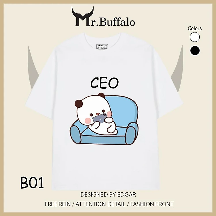 Áo đôi , áo thun cặp nam nữ tay lỡ Unisex "CEO & Lao Công" form rộng vải cotton 100% B01B02 - Mr.Buffalo