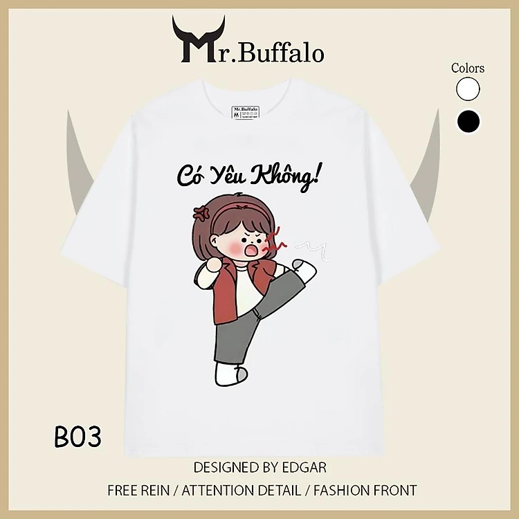 Áo đôi , áo thun cặp nam nữ tay lỡ Unisex "có yêu không" form rộng vải cotton 100% B03B04 - Mr.Buffalo