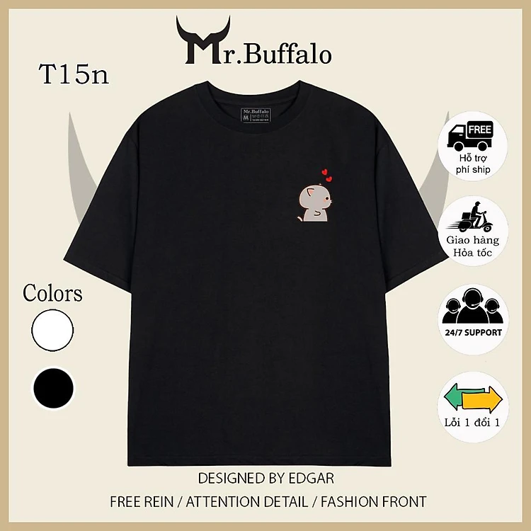 Áo đôi , áo thun cặp nam nữ tay lỡ Unisex form rộng CÓ BIGSIZE vải cotton T15nT16n- Mr.Buffalo
