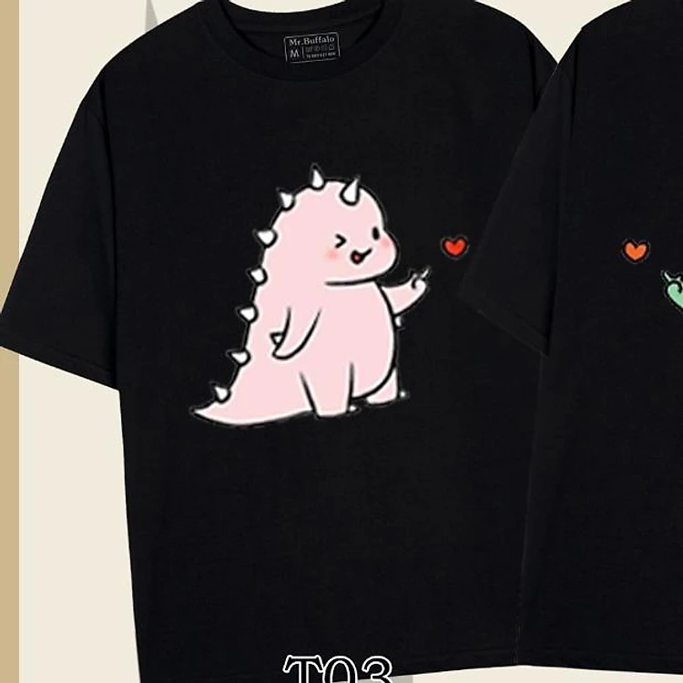 Áo đôi , áo thun cặp nam nữ tay lỡ Unisex "Khung Long Xanh" form rộng vải cotton 100% T03T04 - Mr.Buffalo