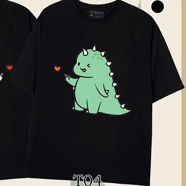 Áo đôi , áo thun cặp nam nữ tay lỡ Unisex "Khung Long Xanh" form rộng vải cotton 100% T03T04 - Mr.Buffalo