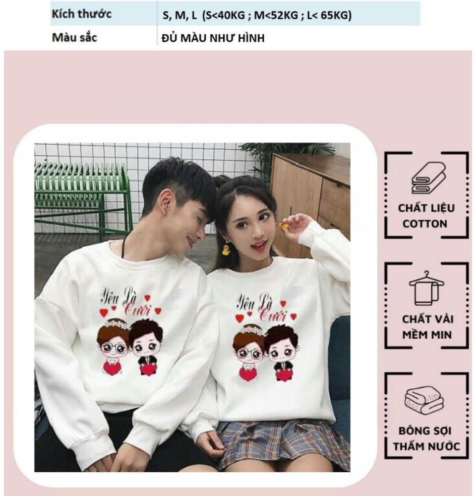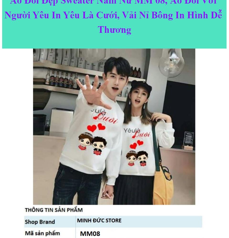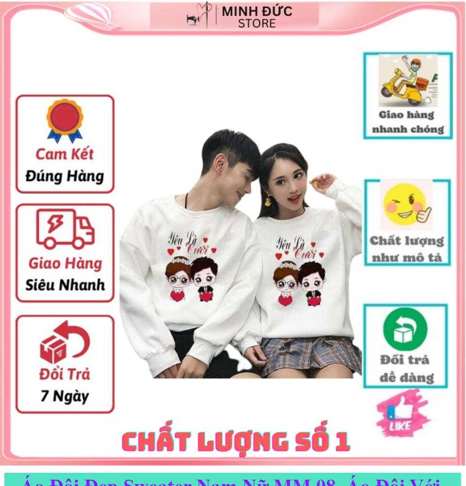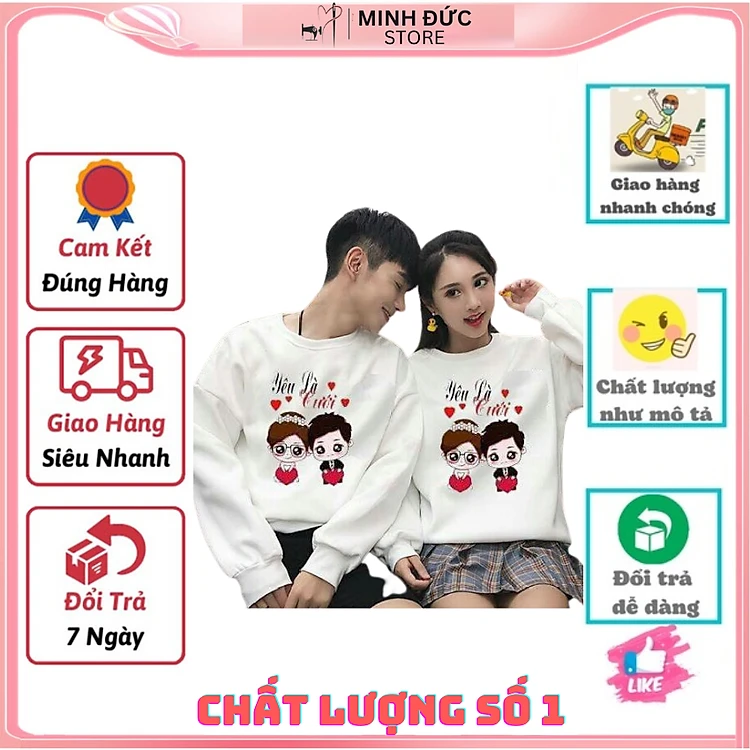 Áo Đôi Đẹp Sweater Nam Nữ MM 08, Áo Đôi Với Người Yêu In Yêu Là Cưới, Vải Nỉ Bông In Hình Dễ Thương