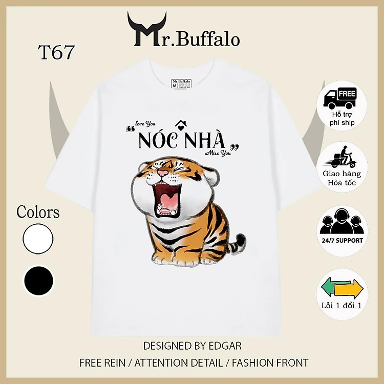 Áo đôi tay lỡ unisex hổ cute nóc nhà - cột nhà T66-T67 Mr.Buffalo