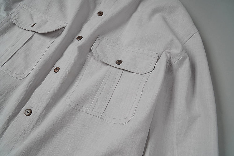 Thiết kế áo sơ mi đũi cổ tầu là thiết kế không mới lạ, nhưng ở thiết kế này với 2 túi hộp dập nổi toát lên vẻ nam tính, lạnh lùng và phong trần cho người mặc. Nếu đam mê phong cách thời trang bụi bặm nhưng vẫn tinh tế, các bạn chớ bỏ qua sản phẩm hot hit này.