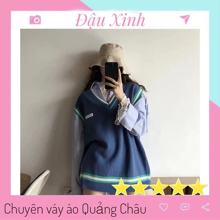 Áo gile len mỏng ulzzang nữ dáng Hàn Quốc giá rẻ dáng rộng cổ chữ v - 011 freesize dưới 60kg nhé