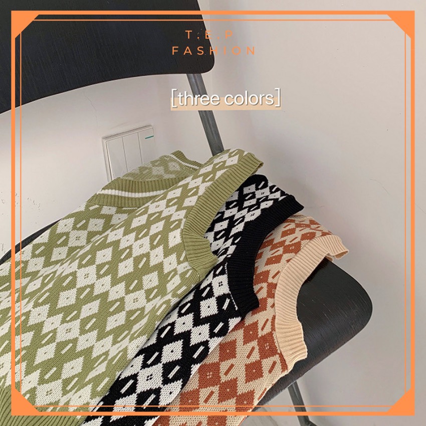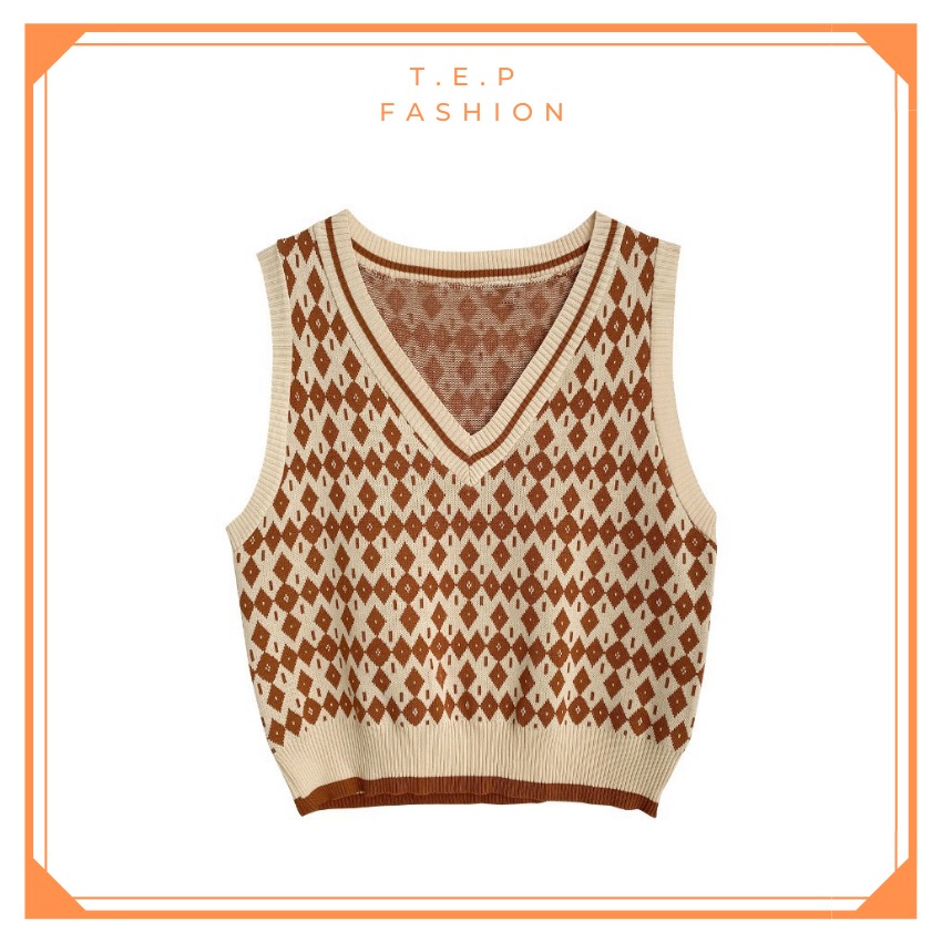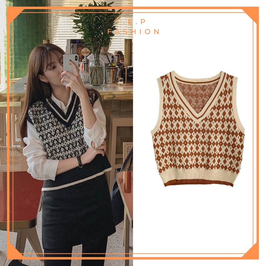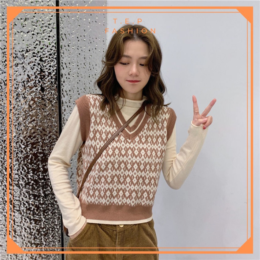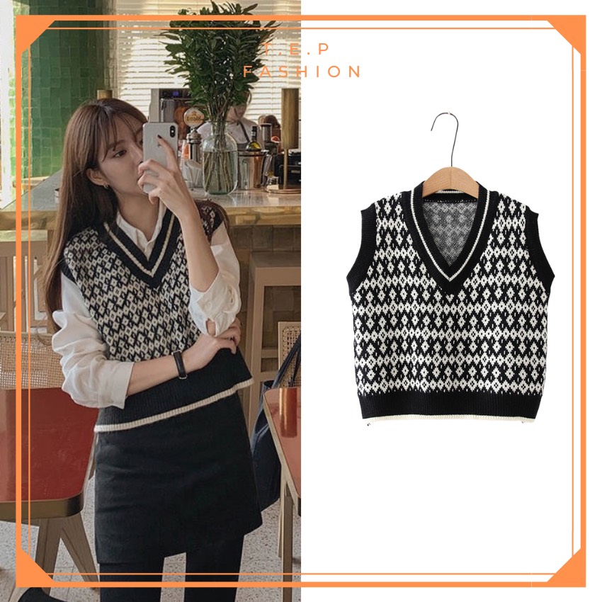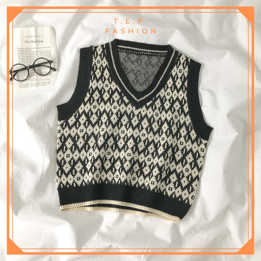Áo Gile Len Nữ Mỏng Hoạ Tiết Thổ Cẩm Phong Cách Hàn Quốc Tep Fashion-Áo Gile Nữ, Áo Gile Len Nữ, Áo Gile Nữ Cá Tính, Áo Gile Len Hàn Quốc, Áo Gile Len Quảng Châu, Áo Len Gile, Áo Len Gile Quảng Châu , Áo Len Gile Caro