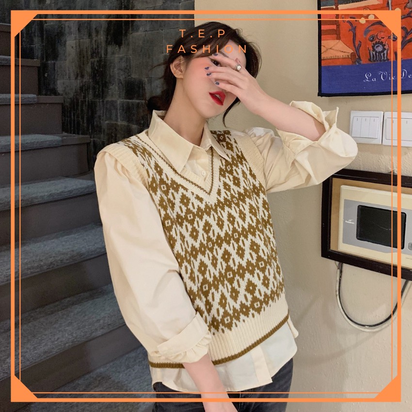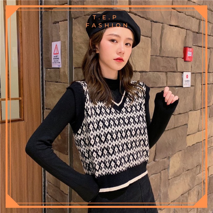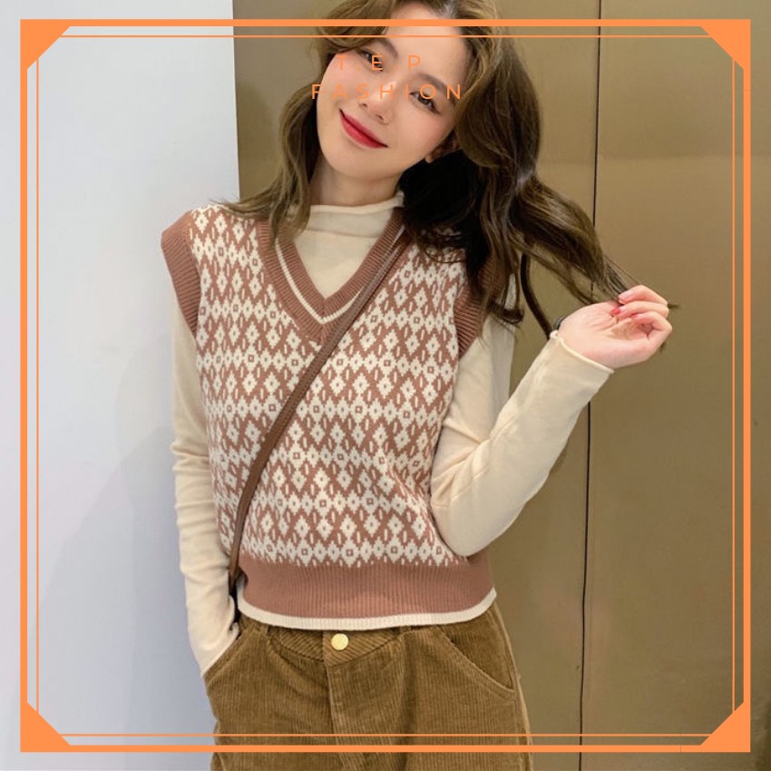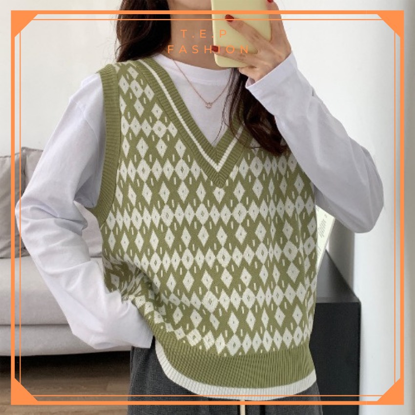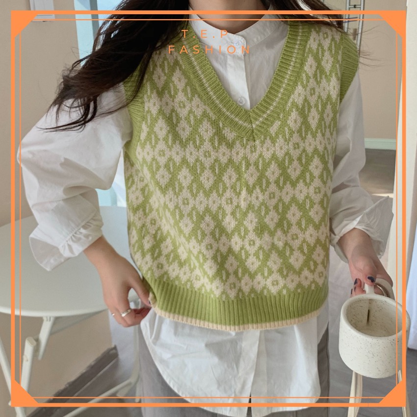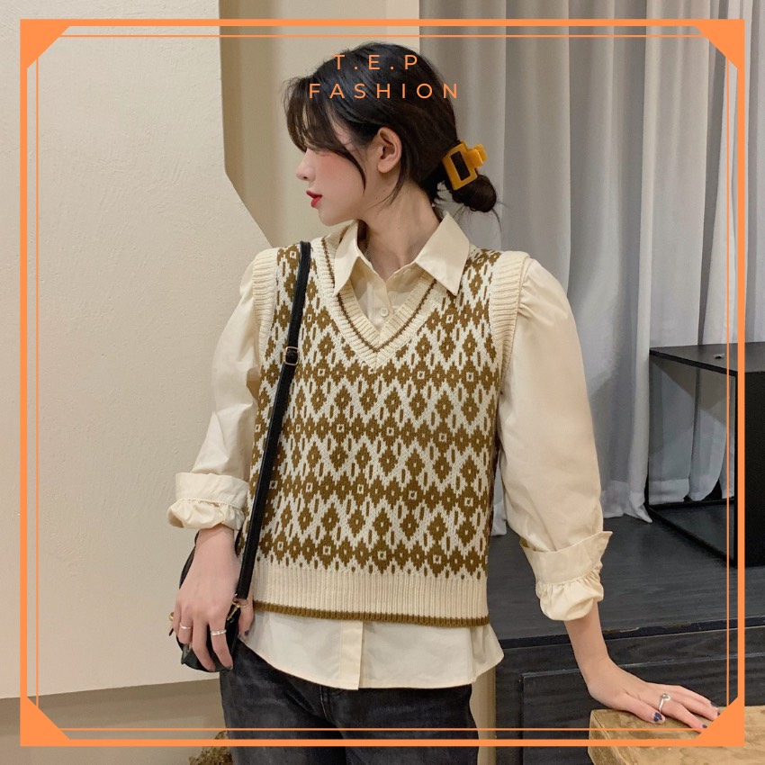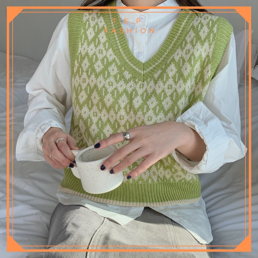 Áo Gile Len Nữ Mỏng Hoạ Tiết Thổ Cẩm Phong Cách Hàn Quốc Tep Fashion-Áo Gile Nữ, Áo Gile Len Nữ, Áo Gile Nữ Cá Tính, Áo Gile Len Hàn Quốc, Áo Gile Len Quảng Châu, Áo Len Gile, Áo Len Gile Quảng Châu , Áo Len Gile Caro