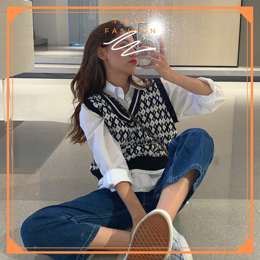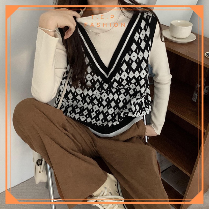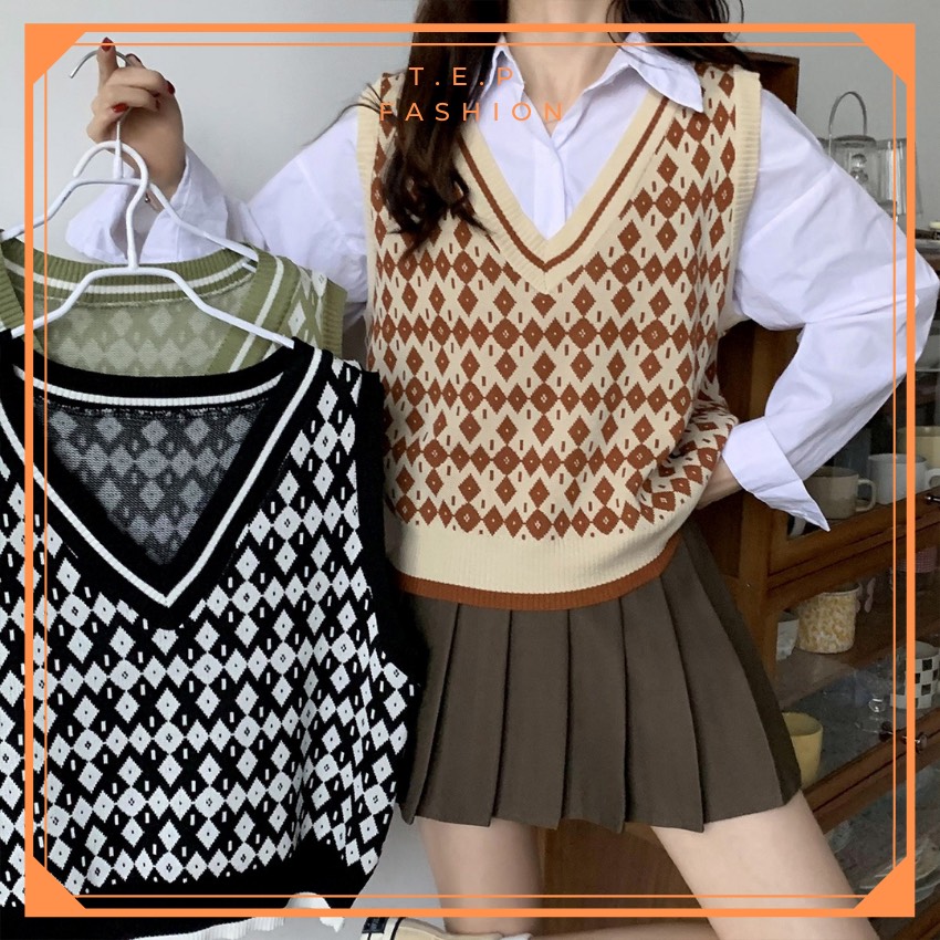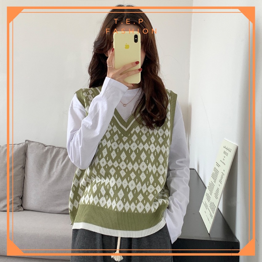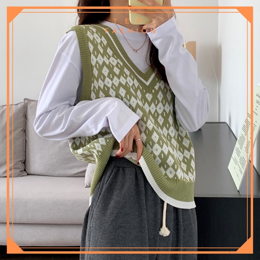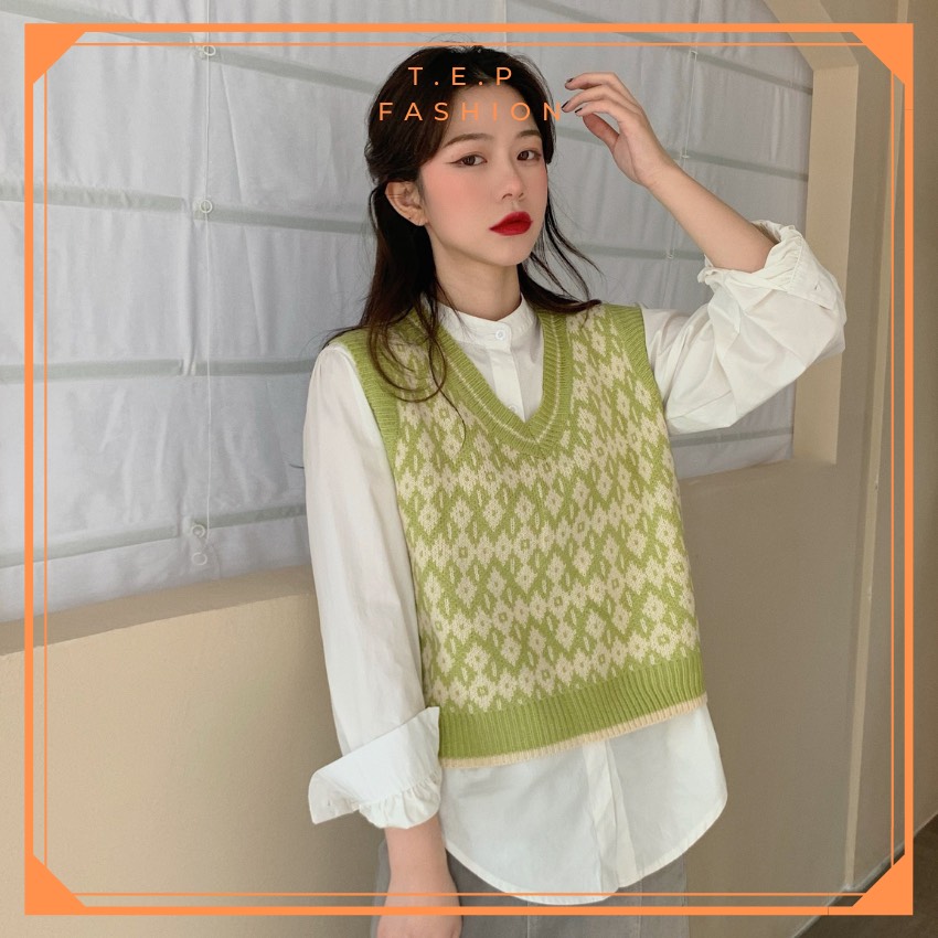 Áo Gile Len Nữ Mỏng Hoạ Tiết Thổ Cẩm Phong Cách Hàn Quốc Tep Fashion-Áo Gile Nữ, Áo Gile Len Nữ, Áo Gile Nữ Cá Tính, Áo Gile Len Hàn Quốc, Áo Gile Len Quảng Châu, Áo Len Gile, Áo Len Gile Quảng Châu , Áo Len Gile Caro
