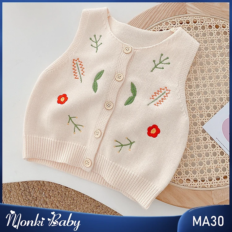 Áo gile len xinh bé gái, mẫu thêu cài cúc dễ thương, chất len mềm mại dễ chịu khi mặc, sợi len đanh chắc bền đẹp | MA30