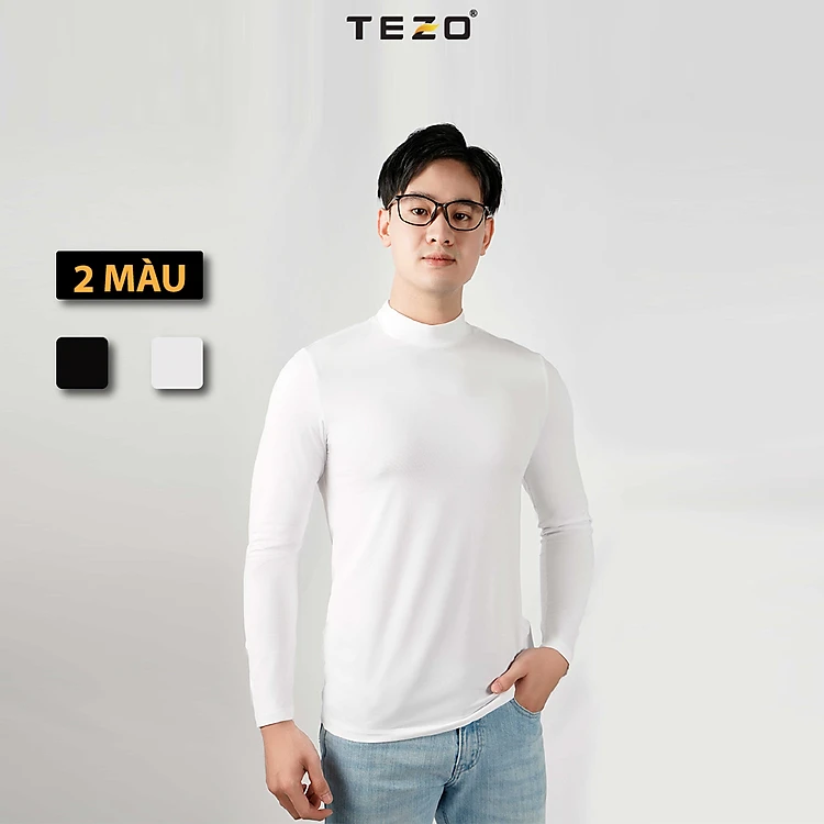 Áo giữ nhiệt nam TEZO, cổ tròn dài tay chất liệu cotton co giãn thoải mái hai màu đen trắng