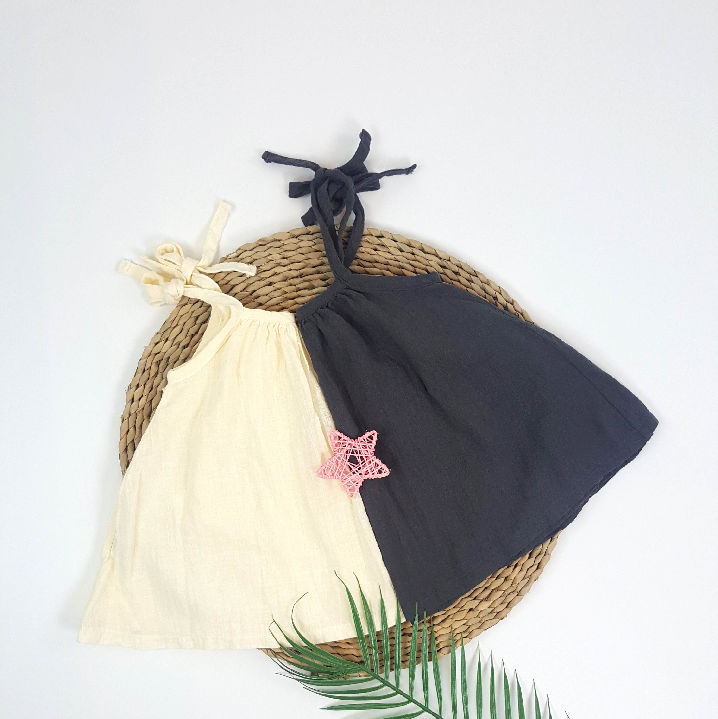 - Thiết kế với điểm nhấn là hai dây áo có thể thắt nơ tạo kiểu vừa đơn giản lại trẻ trung, bé có thể chọn thiết kế này mặc đi học hè hay đi chơi đều hợp.