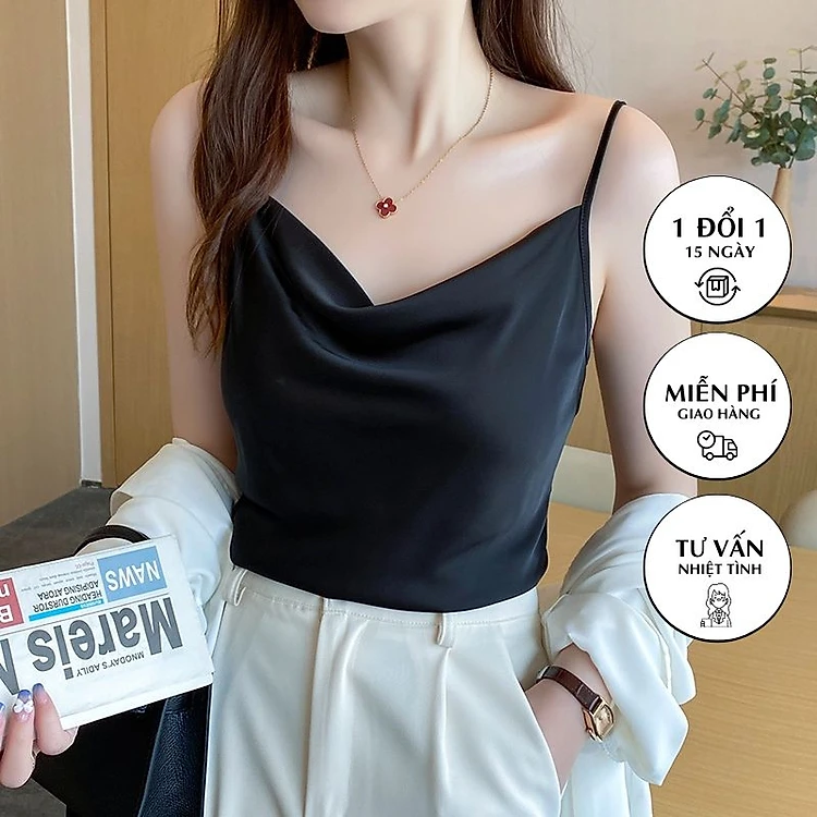 Áo hai dây nữ cổ đổ mặc trong vest chất vải lụa latin, thoáng mát khi mặc - New Design AO0013