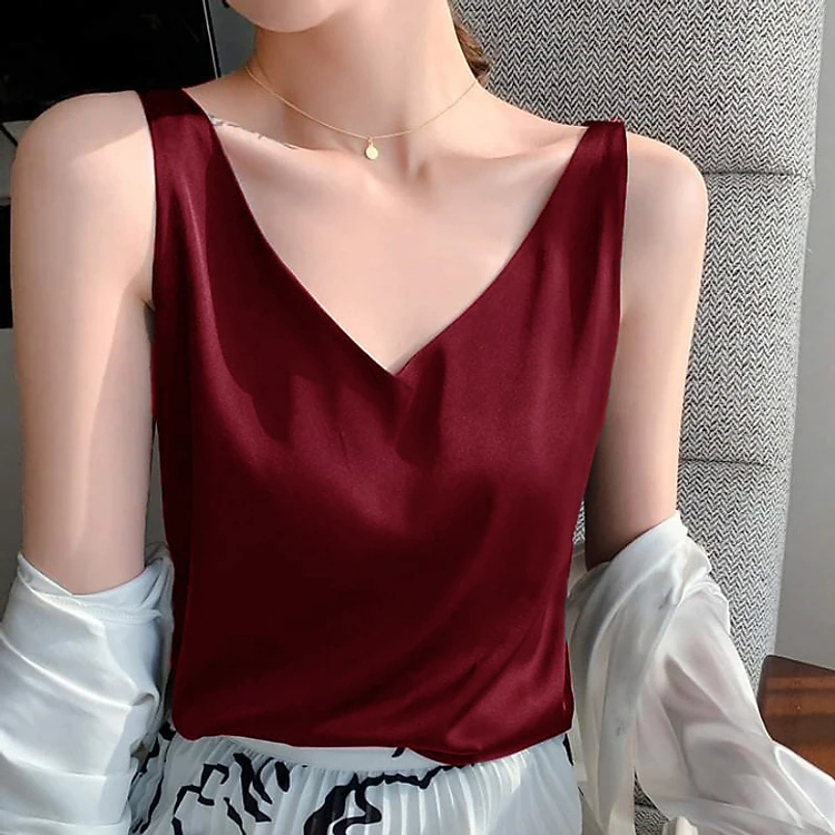 Áo 2 Dây New Design Thiết Kế Cổ V Gợi Cảm, Kiểu Áo Nữ Hiện Đại , Vải Lụa Hàn Quốc Trơn, Nhiều Màu, Mịn ,Thoáng Mát AO0002