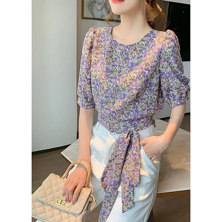 ÁO HOA CROPTOP THẮT NƠ EO XINH XẮN
