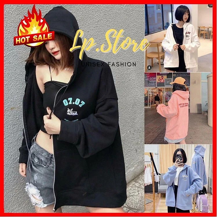 Áo Hoodie - Áo Khoác Nỉ Nam Nữ Dây Kéo Unisex Thêu 0707 Cực Hot - Kèm DEAL Sốc ( có ảnh thật )