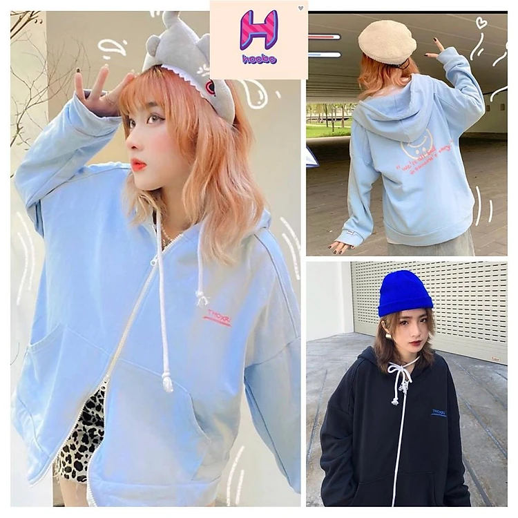 Áo Hoodie Nữ Mặt Cười Thoxri Bigsize Ulzzang form rộng trơn Uni Mùa Đông
