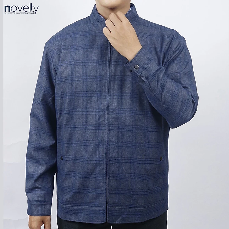 Áo Jacket nam 2 lớp cổ trụ Novelty Casual caro xanh dương NJKMINMT3B2305262