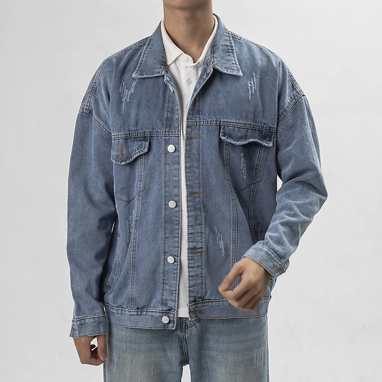 Áo jean nam thêu hình bông cúc, áo khoác thời trang năng động cá tính
