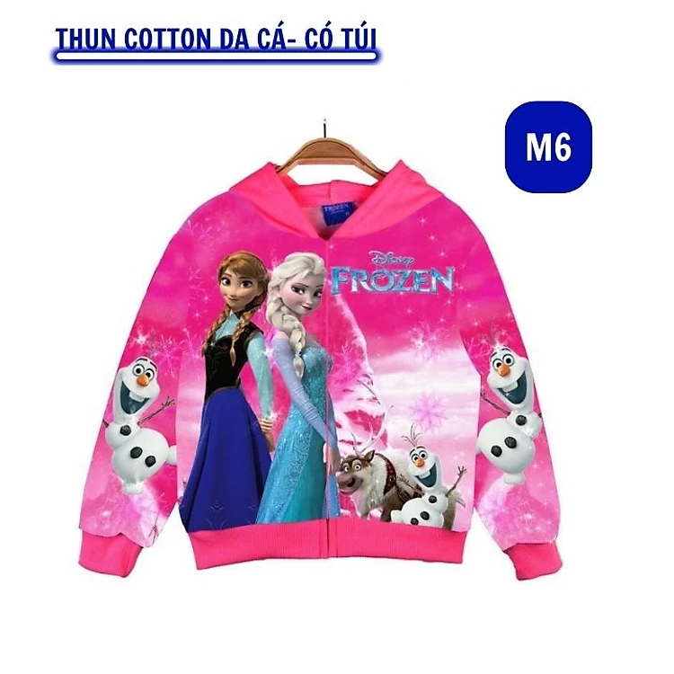 Áo khoác bé gái hình elsa từ 10-43kg. Ao chống nắng chất liệu thun da cá thấm hút mồ hôi - HuongNhien
