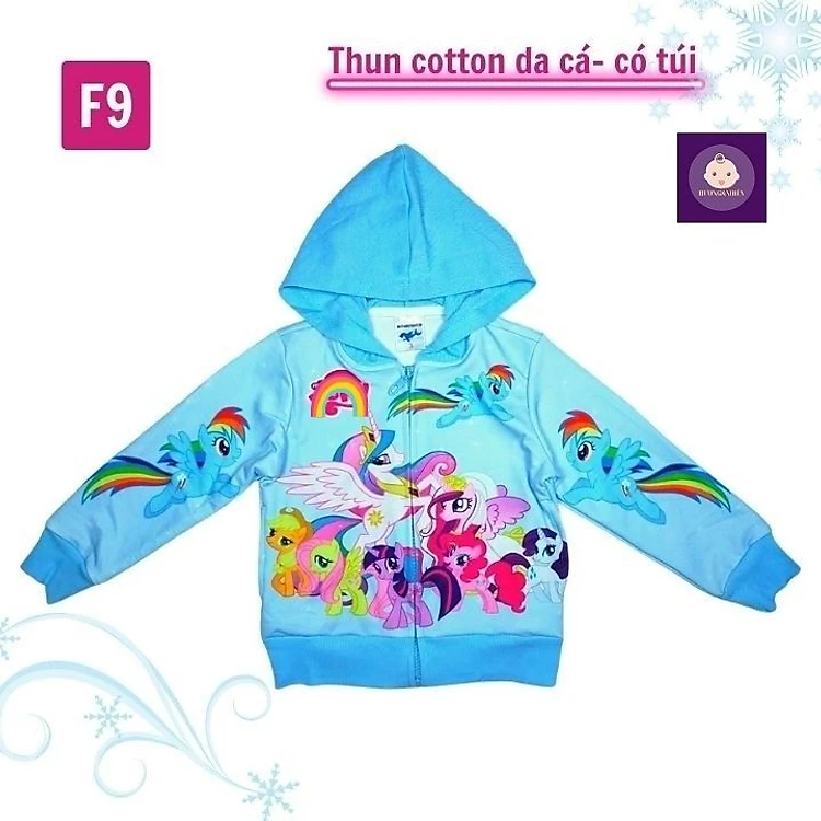 Áo khoác bé gái hình ngựa cầu vòng từ 11-43kg - Chất liệu thun cotton da cá in 3D