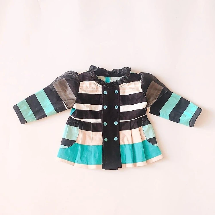 Áo khoác bé gái Kẻ xanh kaki mềm - AICDBGNNJPSF - AIN Closet