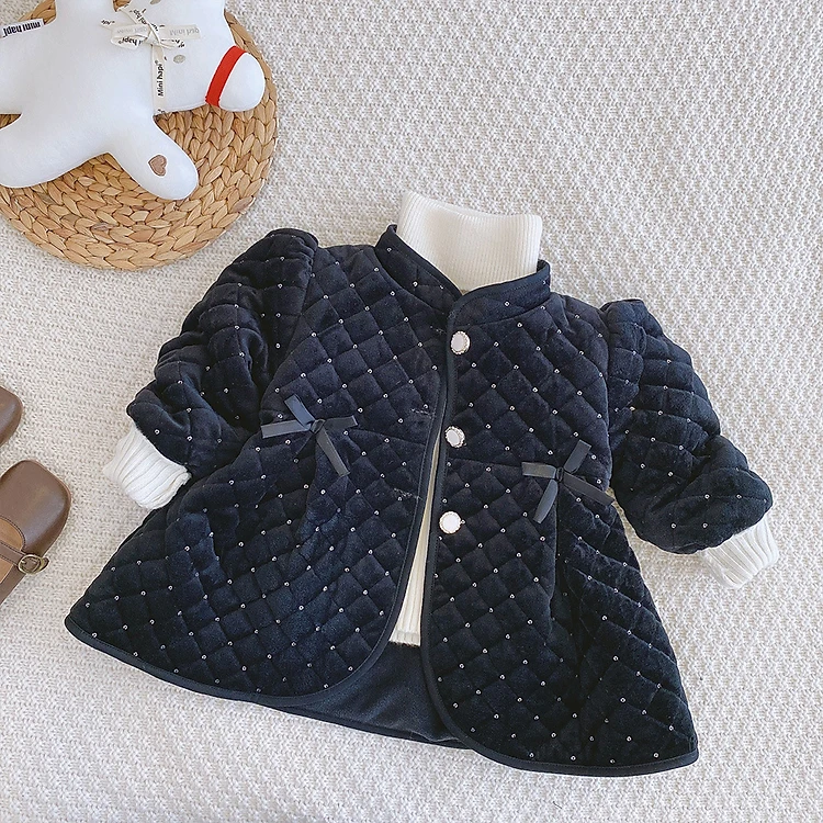 Áo khoác bé gái thời trang dầy ấm, phong cách sang chảnh, mặt ngoài trần trám, mặt trong lót lông mịn | MP14