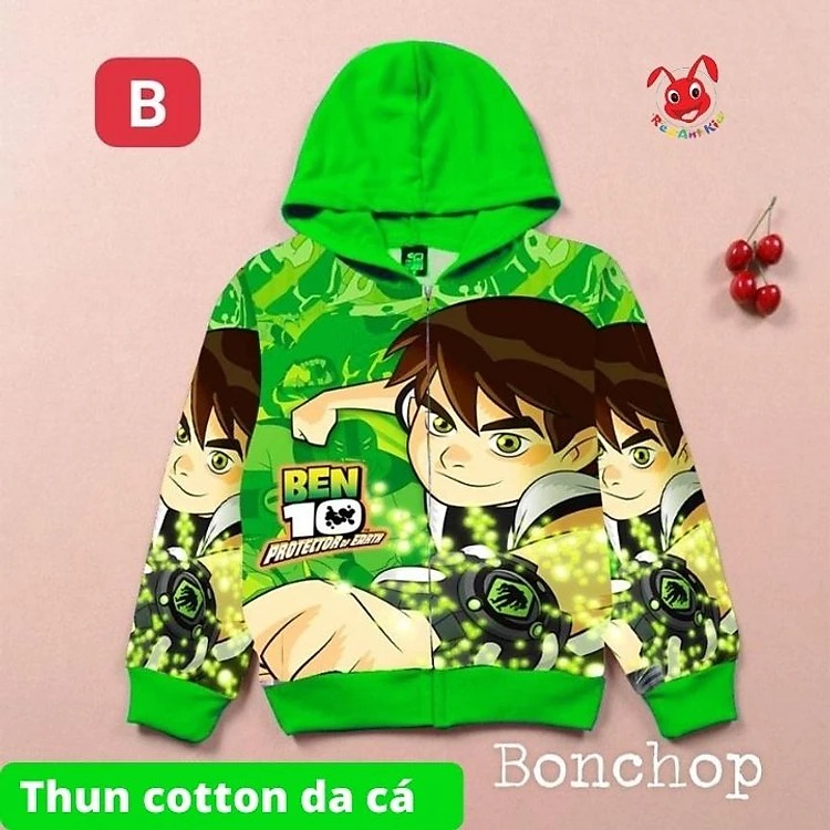 Áo khoác bé trai hình ben 10 từ 9-43kg. Chất thun da cá hút mồ hôi- hình in sắc nét - Kiến Lửa
