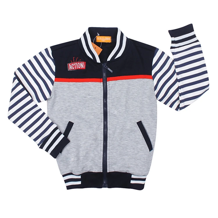 Áo Khoác Bé Trai VTA Kids BT50730XD – Xám Phối Xanh Đen có thiết kế tay dài, cổ chữ V trẻ trung, hiện đại. Bé sẽ luôn cả, thấy thoải mái, dễ chịu khi mặc nhờ áo được may từ chất liệu cotton cao cấp, mềm mại. Khóa kéo chắc chắn, bền đẹp cho bé sử dụng trong thời gian lâu dài. Tay áo, cổ và gấu áo họa tiết sọc màu xanh đen, thân áo có sự phối màu hài hòa, bắt mắt giữa xanh đen và xám mang lại nét cá tính, năng động cho bé trai.