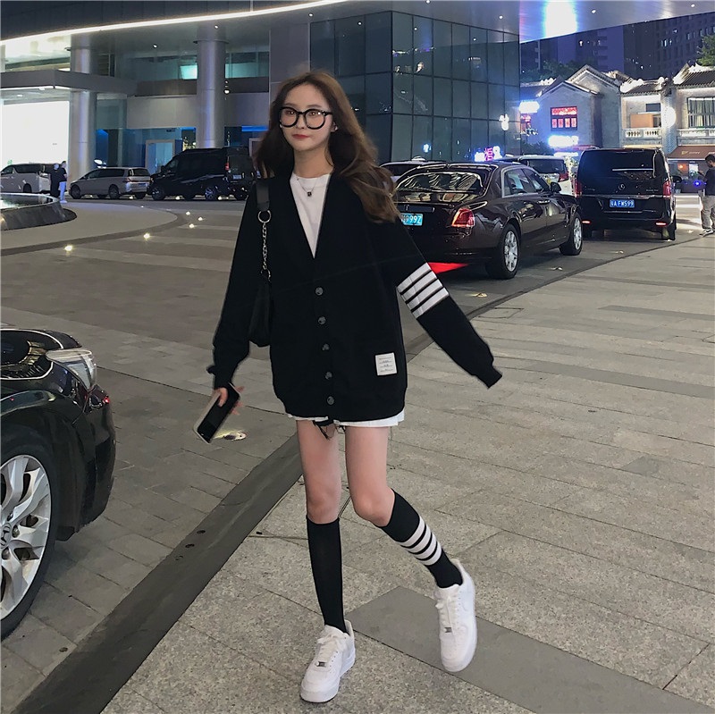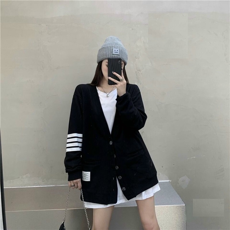 ÁO KHOÁC CARDIGAN 3 SỌC TAY UNISEX LEN MỀM