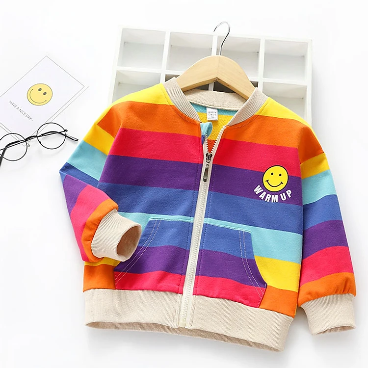 Áo khoác cho bé gái 4-10 tuổi sọc màu tươi tắn phong cách thể thao, năng động phù hợp cho bé mặc đi học, đi chơi, đi du lị vừa chống nắng, vừa chống rét